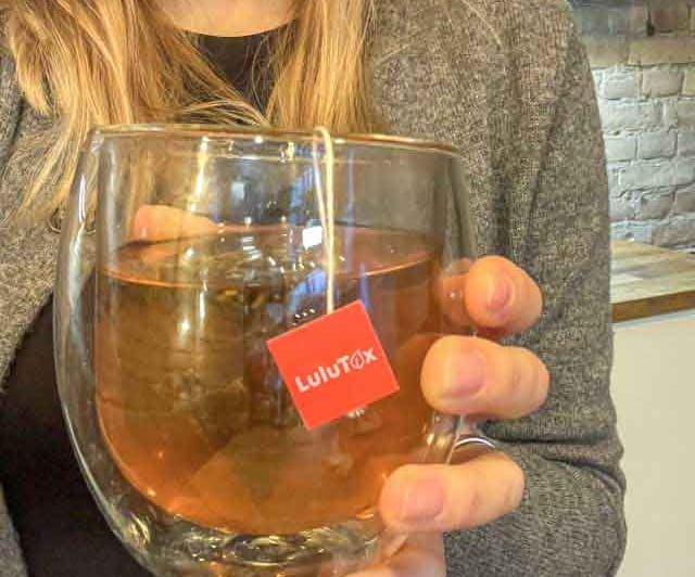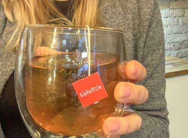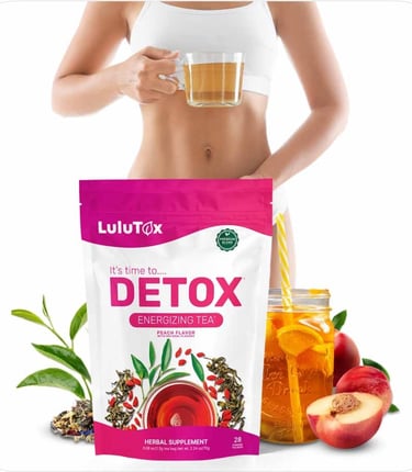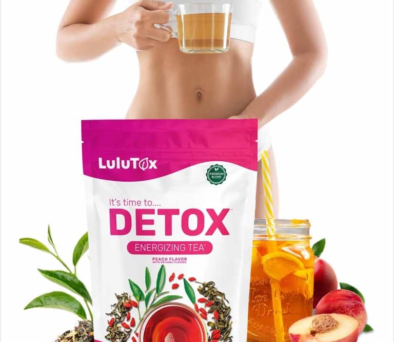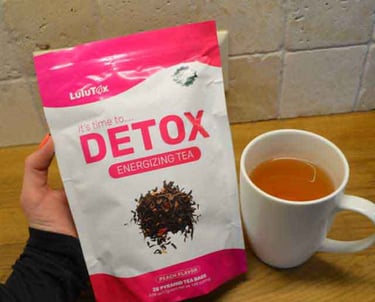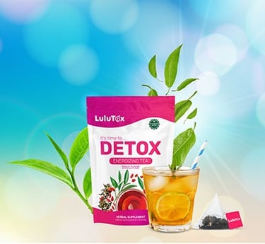 Lulutox is a natural detox tea made from herbal ingredients such as green tea, ginger, dandelion root, and lemongrass.